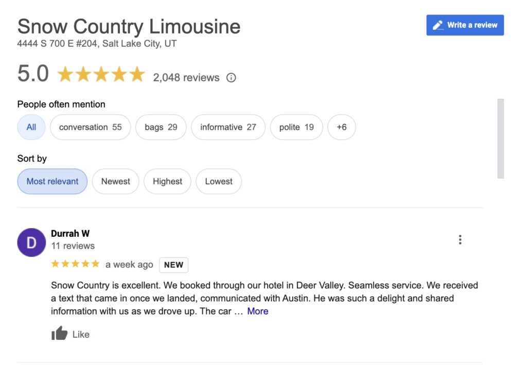 See their success for yourself here: Snow Country Limousine Reviews