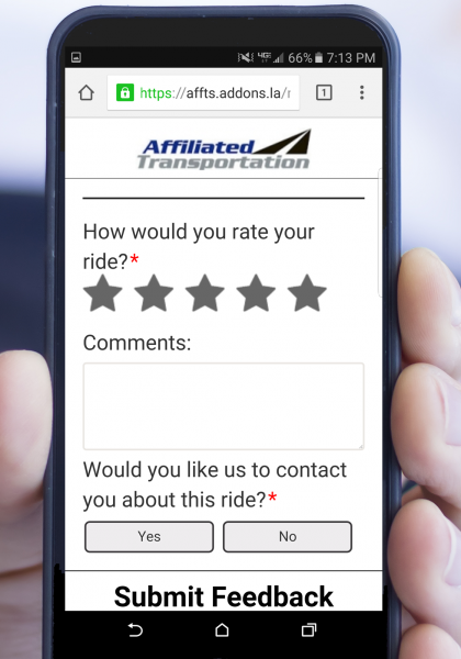 A client finishes a trip and receives a survey via text. They rate their experience five stars and are redirected to leave a glowing review on Google, which helps boost your local SEO and attract new business.