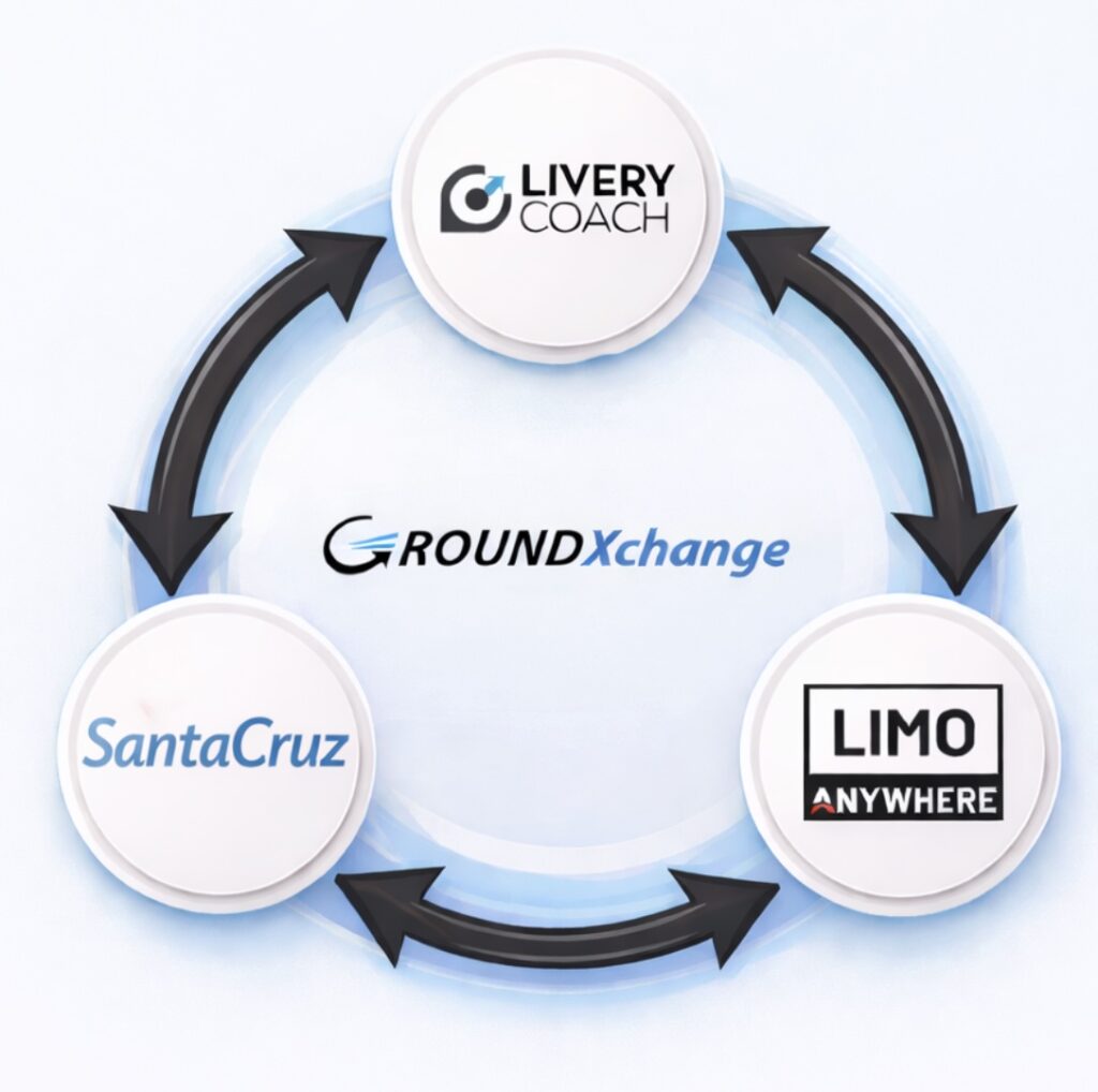 GroundXchange enables seamless trip exchange between SantaCruz, Livery Coach, and Limo Anywhere, allowing you to send and receive affiliate trips across platforms while maintaining: