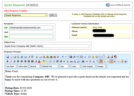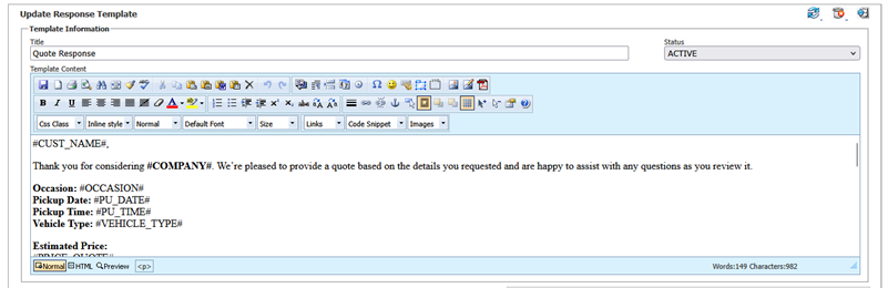 Using Quote Response Templates in Limo Anywhere