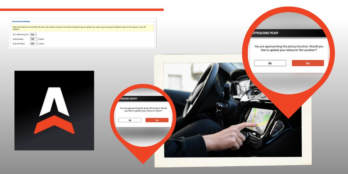 Geofencing allows you to define a virtual radius around pickup and drop-off locations. When a driver enters the defined area, they’re automatically prompted to update their trip status in the DriverAnywhere app—no manual checking or guesswork required.