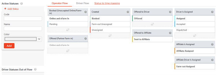 a. Below are the explanations for ‘Operator Flow‘ and an example of mapping statuses is provided. The States marked ‘Optional‘ do not need to have statuses mapped to them.- Created – Status of an unassigned Trip.