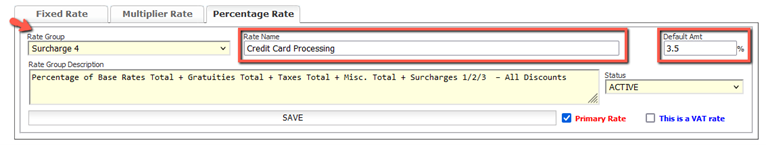 - Enter the desired name for your credit card processing fee in the “Rate Name” field.