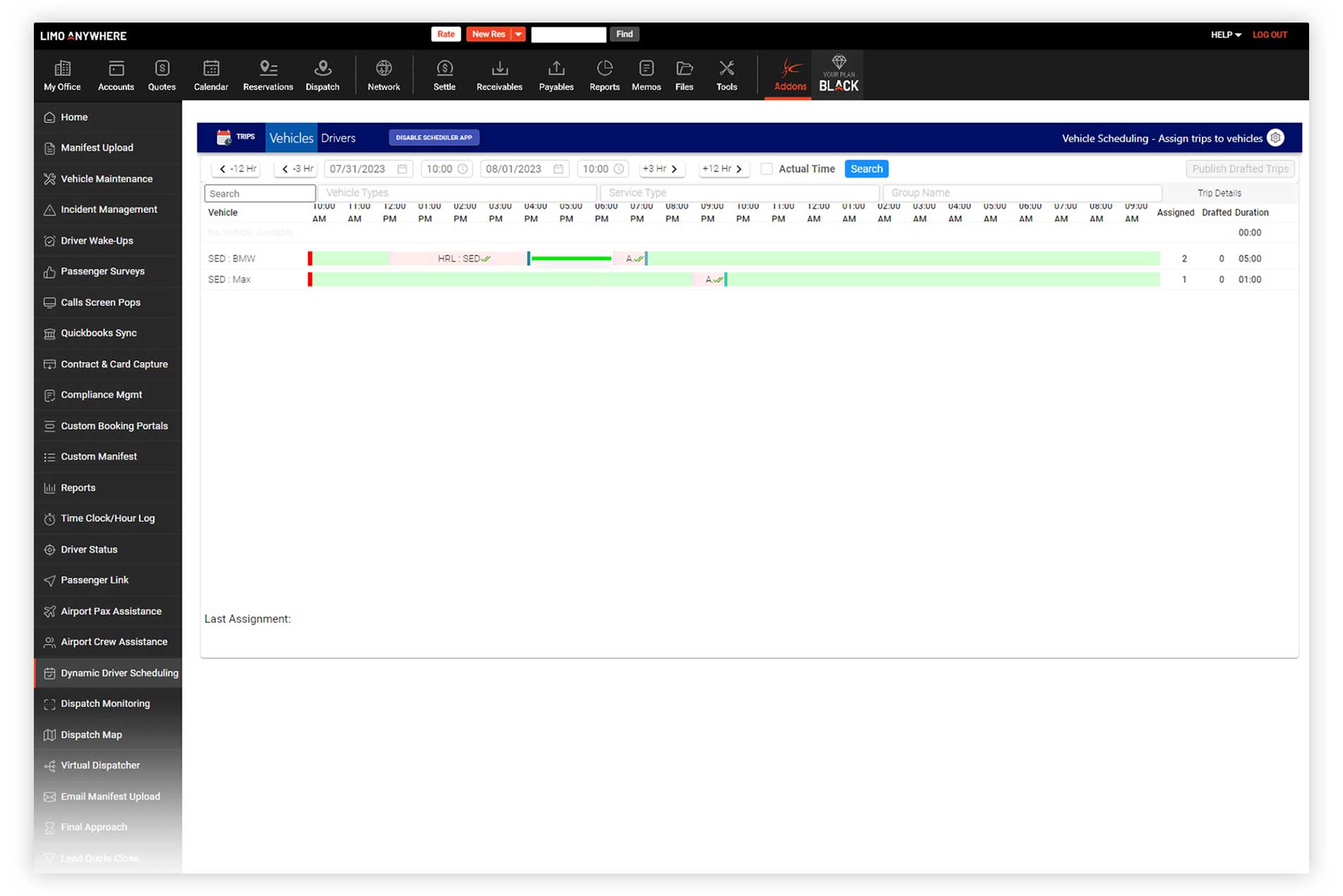 Do you find yourself tangled in the complex process of scheduling driver availability or handling multiple systems for punch clocks? Are you struggling with the puzzle of where to schedule drivers based on your fleet load? The Driver Scheduling tool from Limo Anywhere is here to streamline your operations. We offer an automated solution to create your fleet's driver schedules, eliminating time-consuming tasks and reducing the risk of inaccuracies that could negatively impact your business. With an easy setup, your LimoAnywhere system will be integrated seamlessly, ready to optimize your fleet management. Our tool provides the flexibility for your drivers to create their schedules via our user-friendly mobile web application. This includes the ability to request time off, work extra shifts, and more. From there, our system automatically matches preferred drivers and vehicles to the corresponding trip details – with the option for you to manually assign matches if preferred. By ensuring efficient scheduling of vehicle resources, you'll be able to handle more jobs with fewer cars and drivers. Stay focused on what matters most while we handle the scheduling.